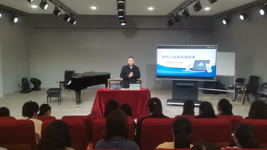 在座谈会之后,河南省名师驻李大强老师为学员们在艺术楼八音讲堂讲授《如何上好音乐微型课》,李老师分享了自己的学习经历、舞台实践,从四个方面来讲述微型课的讲授过程且区分了微型课与说课的区别。李大强老师用丰富的语言、符合实际的例子并且同学员一同讨论教学问题,使得学员们得到更多的启发和提高。