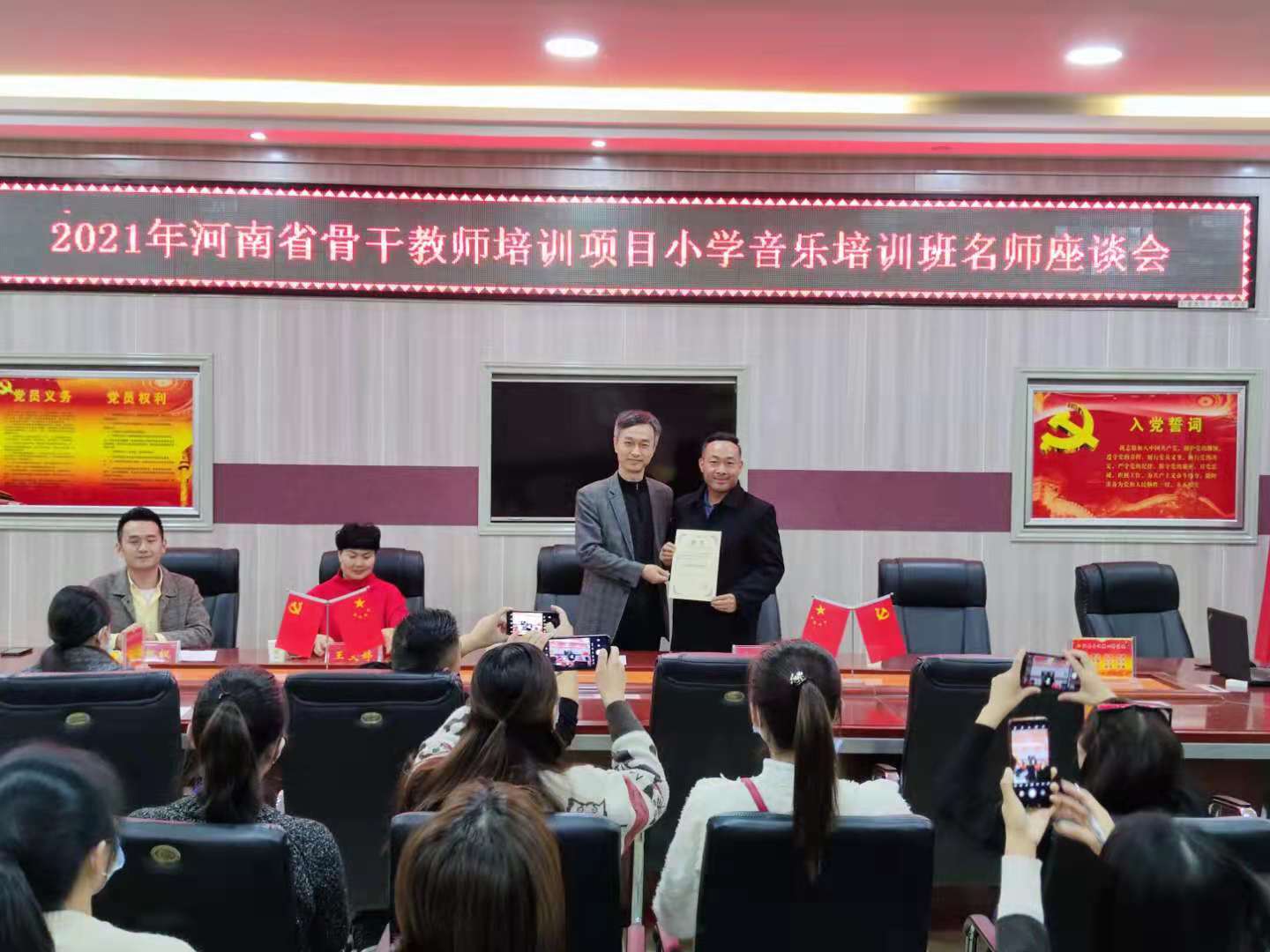 10月23日下午,“2021年河南省骨干教师培训项目小学音乐培训班”名师座谈会在艺术楼会议室举行。河南省名师李大强、王文婷,英国365集团经理陈新宇,省培专业班主任梁凯枫博士参加了座谈会。座谈会由梁凯枫博士主持。