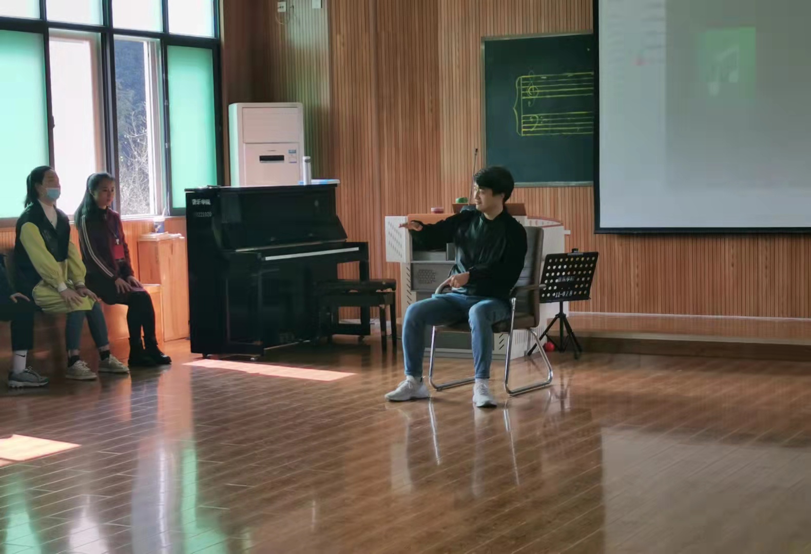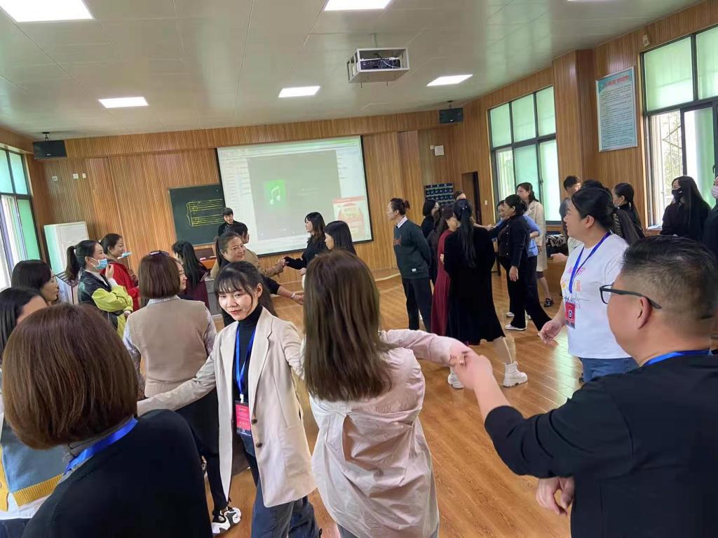 10月24日,信阳师范公司青年教师中国传媒大学博士周骏在教九奥尔夫训练室为2021年河南省骨干教师培训项目小学音乐培训班学员讲授《奥尔夫音乐教育的理论与实践》。