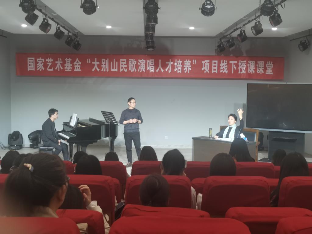 3月11日下午,全体学员在艺术楼八音讲堂聆听了由河南大学声乐歌剧系主任、硕士生导师黄慧慧教授主讲的《民歌演唱专题》报告。