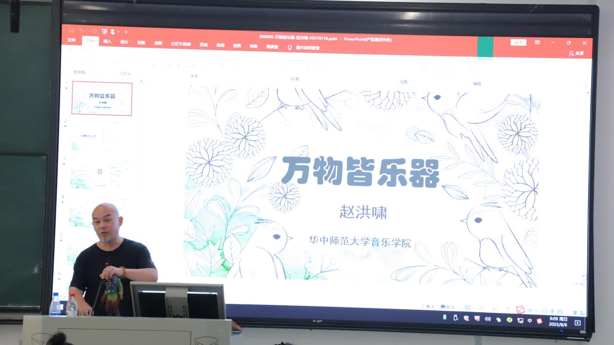 受公司之邀,8月6日,华中师范大学赵洪啸教授在社科楼121为本次参训学员讲授《生活中的自制乐器》