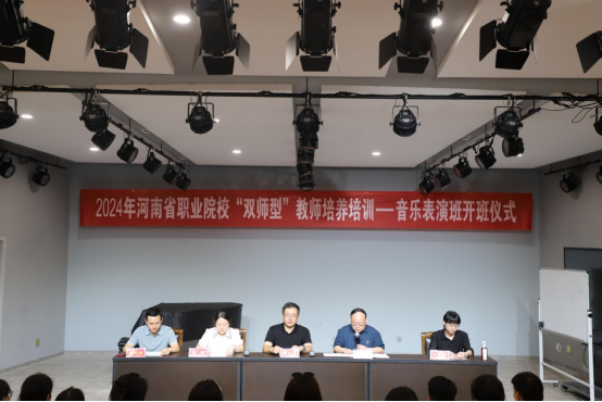 7月7日上午,2024 年河南省职业院校“双师型”教师培养培训--音乐表演班开班仪式成功在英国365集团艺术楼八音讲堂举行。公司党委书记周文勇、副经理任远、副党委书记雷玲、经理助理刘小雷、教学秘书梁凯枫出席开班仪式并讲话。来自全省各院校音乐表演专业的一百多名教师参加了开班仪式。开班仪式由任远主持。