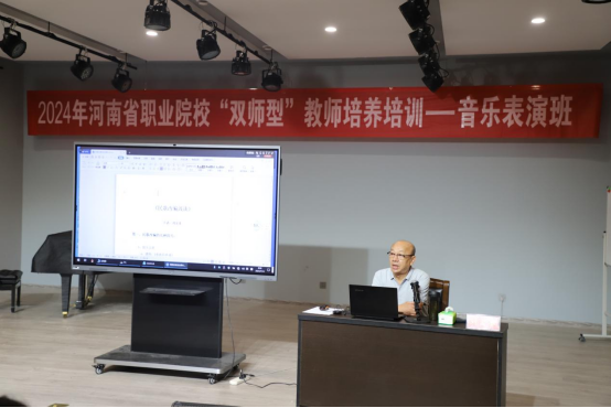 2024年7月14日上午,应公司之邀,国家一级作曲家刘宏奎老师为2024河南省“双师型”教师培养培训音乐表演班学员讲授《大别山民歌改编》这一专题,并分享了自我的研究成果与学员们进行积极的探讨。