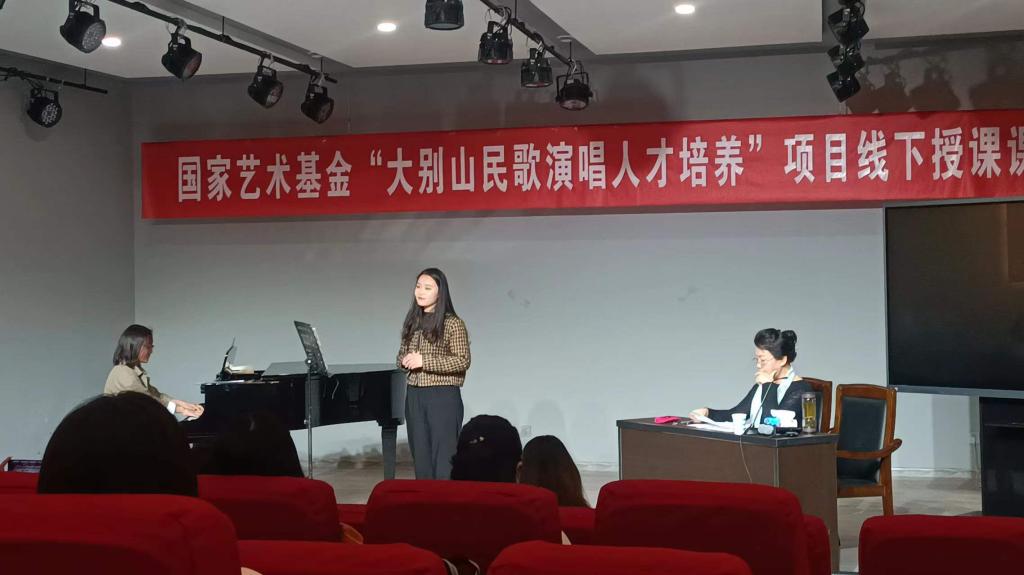 黄慧慧教授强调,在民歌演唱过程中,一是要对歌唱共鸣、歌唱色彩、真声比例有度的把握;二是在音乐演唱过程中要保持作品的连贯;三是分析音乐结构,通过音乐节奏、强弱、情感对同一句歌词进行艺术处理。
