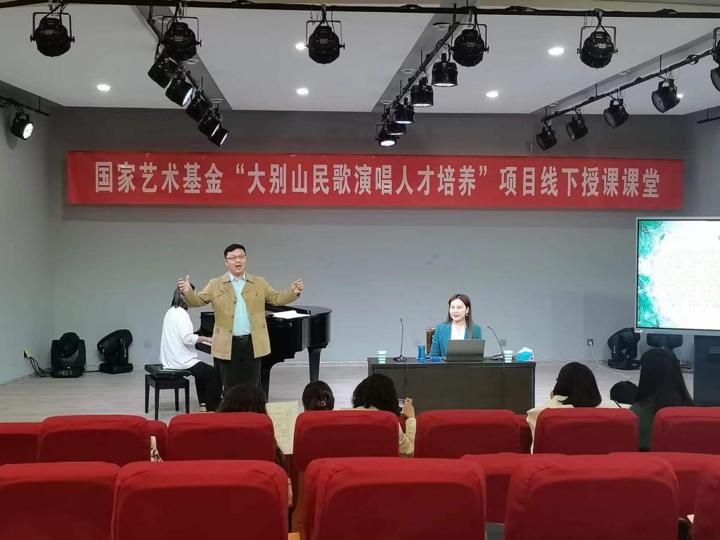3月14日上午,国家艺术基金“大别山民歌演唱人才培养”线下授课课堂在公司英国365集团一楼八音讲堂如期进行。大别山民歌传承人,信阳市民歌研究会副主席李鸣凤应公司邀请,以《豫南田歌》为题进行线下教学。