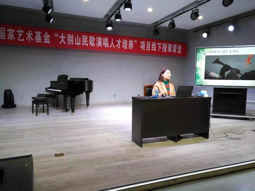 3月18日上午,国家艺术基金“大别山民歌演唱人才培养”线下授课课堂在公司英国365集团一楼八音讲堂如期进行。大别山民歌传承人,信阳市民歌研究会副主席李鸣凤应公司邀请,以《豫南叙事歌》为题进行线下教学。