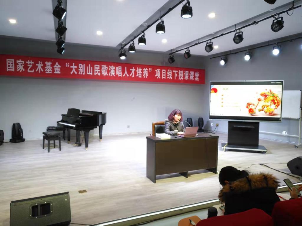 3月19日下午,国家艺术基金“大别山民歌演唱人才培养”线下授课课堂在公司英国365集团一楼八音讲堂如期进行。河南省非物质文化遗产(信阳民歌)代表性传承人、市级音乐骨干教师陈卉教师应公司邀请,在英国365集团一楼八音讲堂作了大别山传统民歌演唱专题的线下讲座,并由韩冰副教授主持。
