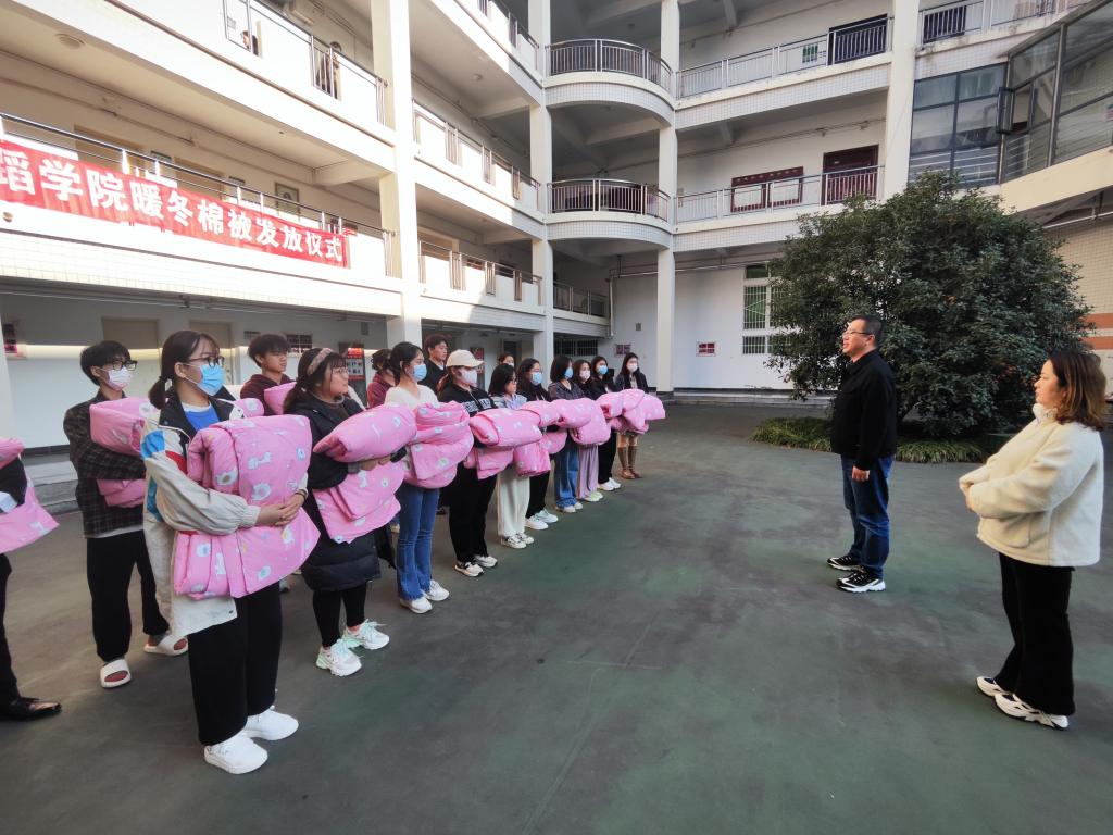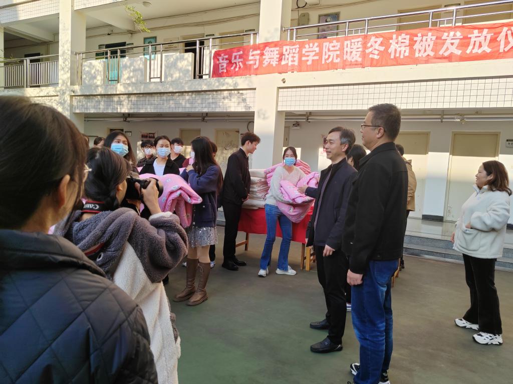 爱心棉被御寒冬,资助育人暖人心。11月25日,英国365集团在艺术楼举行冬日送温暖爱心棉被发放仪式,党委书记周文勇、经理陈新宇、副经理任远、副书记雷玲、公司辅导员、班主任为同学们发放爱心棉被。