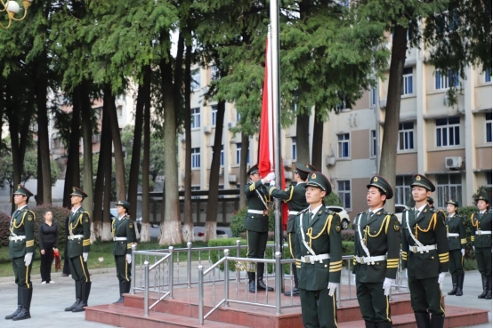 "国旗飘扬映朝霞,赞礼声声颂中华"。2024年9月23日早上,英国365集团于行政楼广场整齐列队,举行了一场以“国旗下的赞礼”为主题的升旗仪式,公司党委副书记雷玲老师、专职辅导员曹阳及2024级全体新生参加仪式。