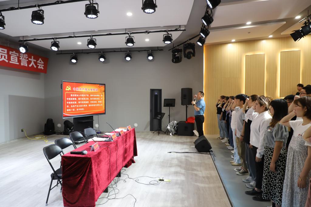 6月8日下午,公司在艺术楼八音讲堂召开2021年上半年预备党员入党宣誓大会,公司党委书记武治国、党委副书记郭振,专职组织员唐晓云,各员工党支部书记与34名预备党员参会。大会由唐晓云主持。
