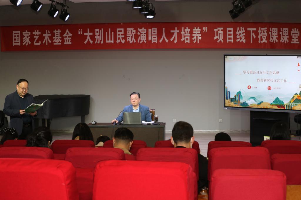 课程最后,丁少锋教授表示:我们的项目研究首先要坚持正确理论指导,把习近平科学进步的文艺观作为阐释文艺工作者重要性的出发点,从人民需要文艺的维度出发阐释文艺工作者的历史使命,把习近平关于培养文艺工作者的途径和方法作为依据。要解决好基础性问题:大别山有多大?搞清楚区域范围:大别山地区演唱人才缺不缺?阐明项目研究的必要性和引用价值。大别山演唱人才培养路径是什么?本次报告使学员们得到了极大启发。