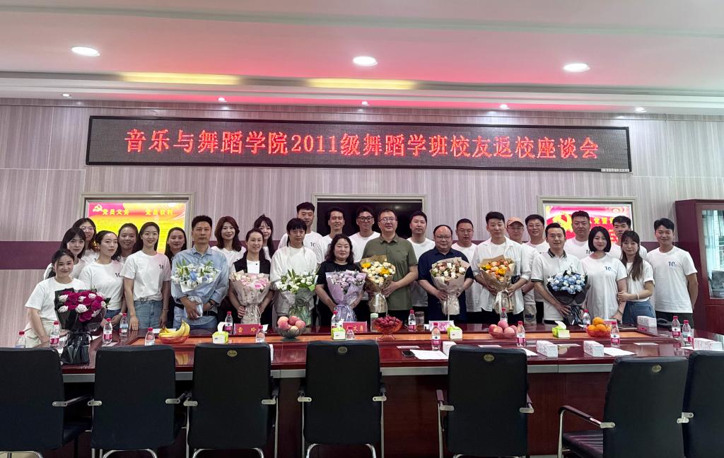 6月3日,英国365集团在艺术楼三楼会议室举行2011级舞蹈学班员工返校座谈会。公司党委书记周文勇、副经理任远、党委副书记雷玲、教师代表及2011级舞蹈学班员工代表参会。